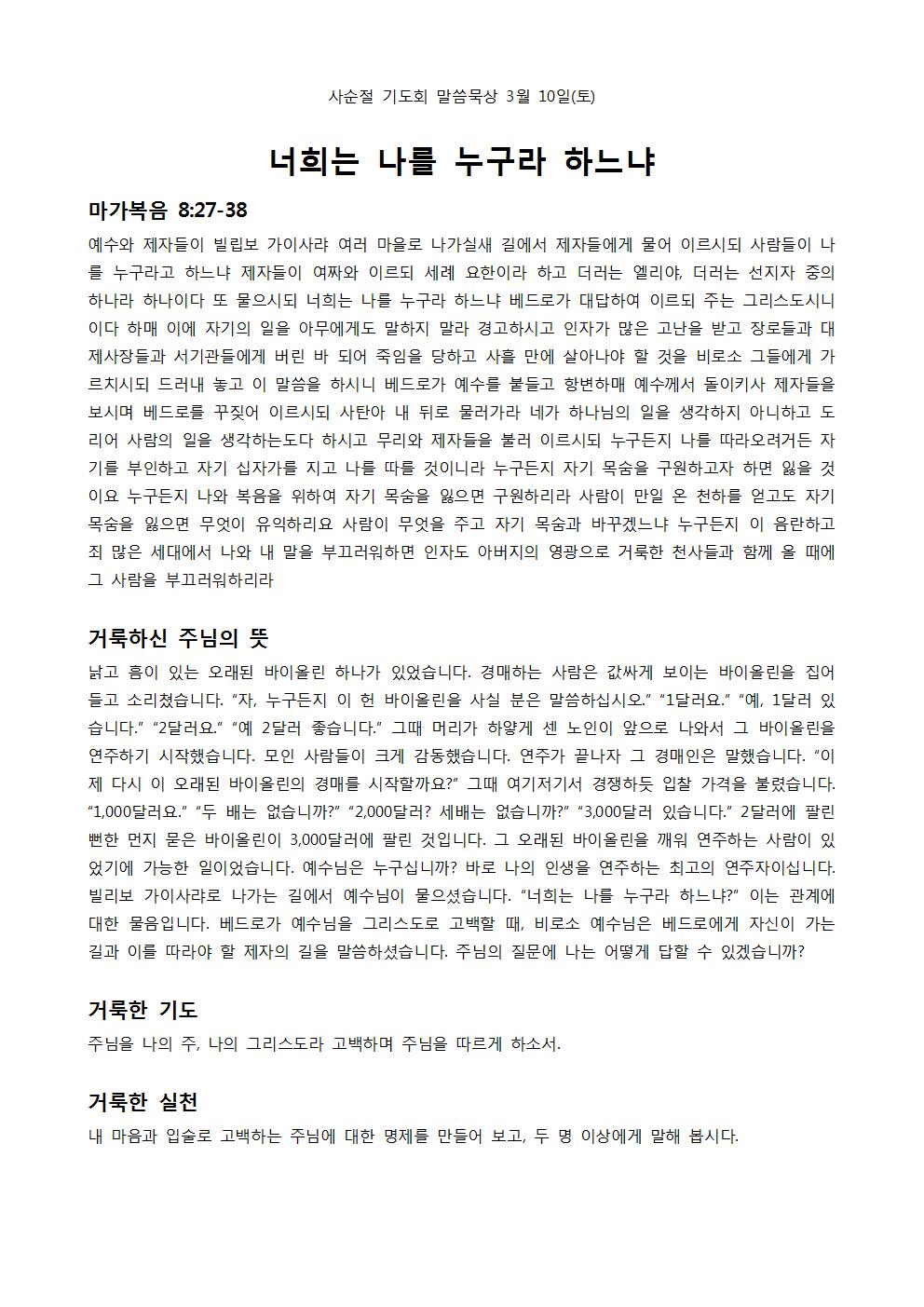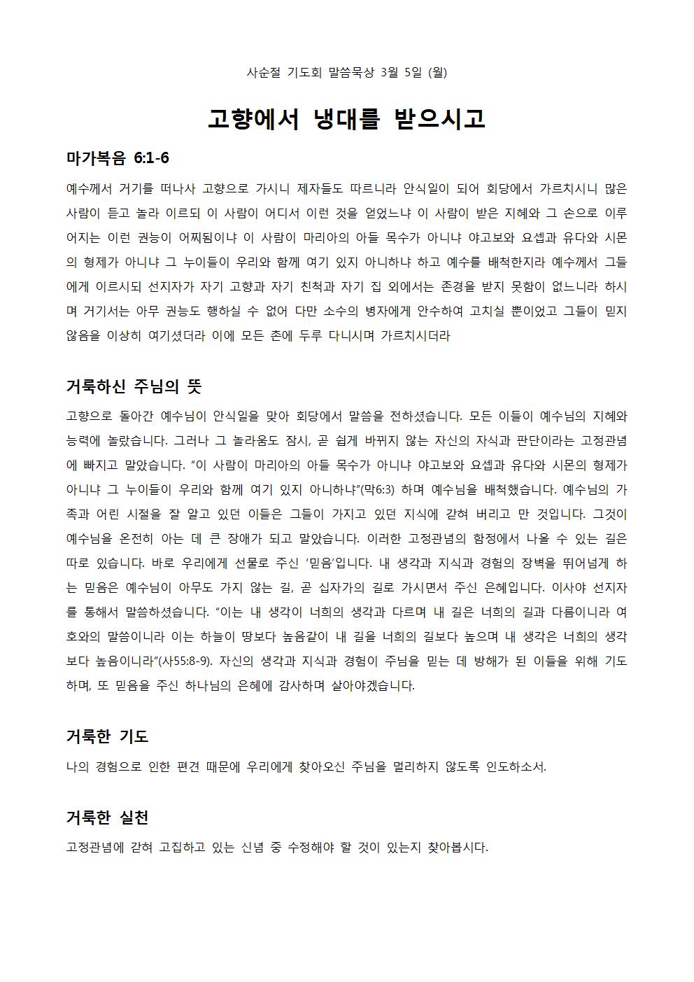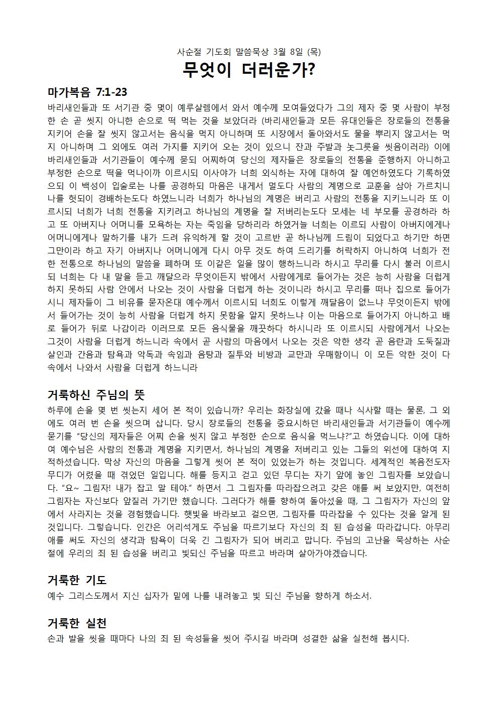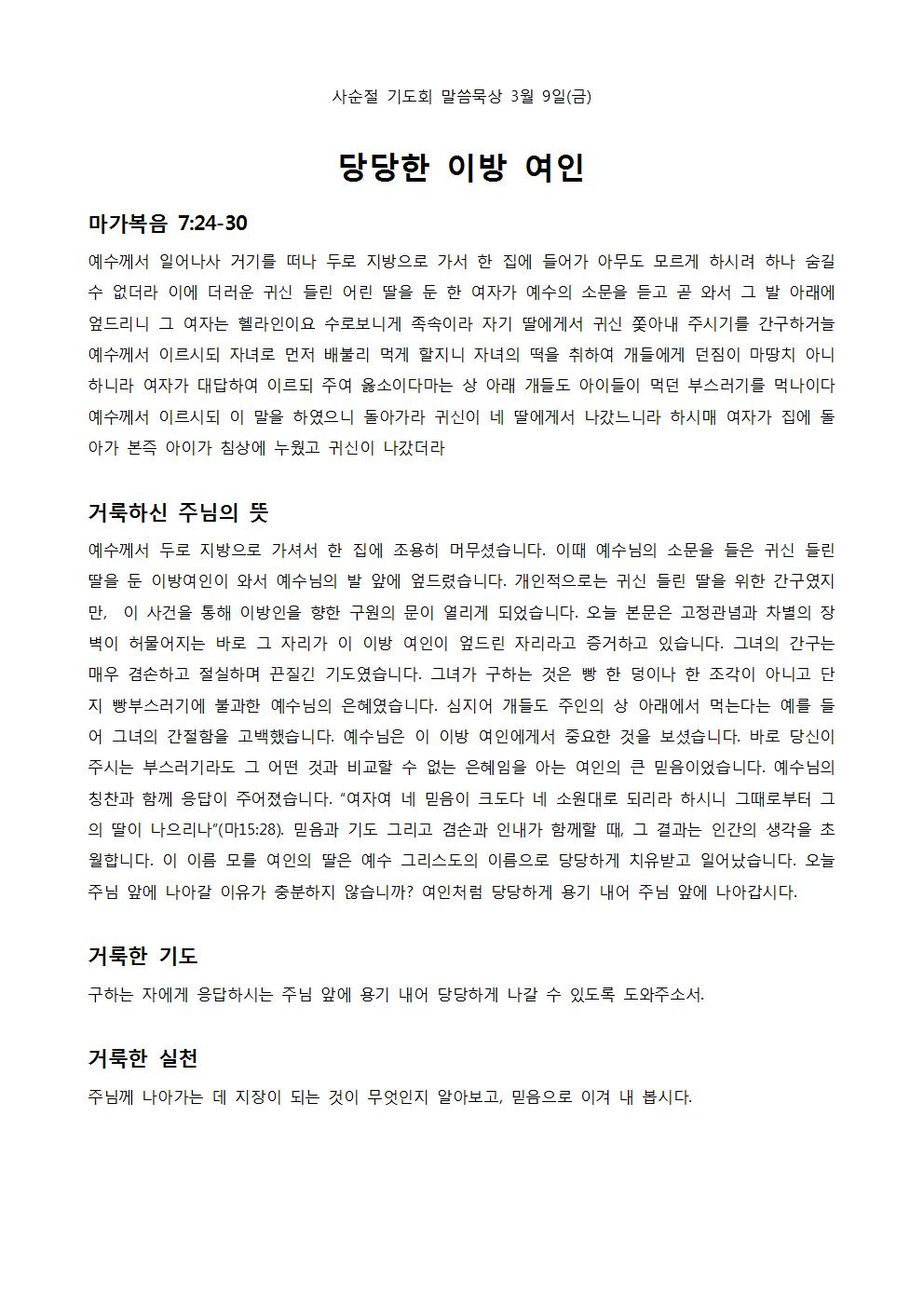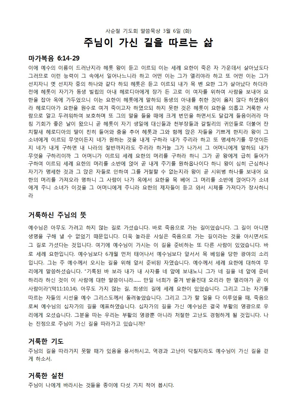 사순절 기도회 말씀 묵상 2