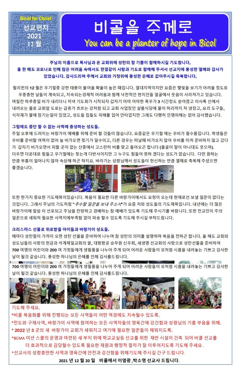 비콜을 주께 (선교소식)
